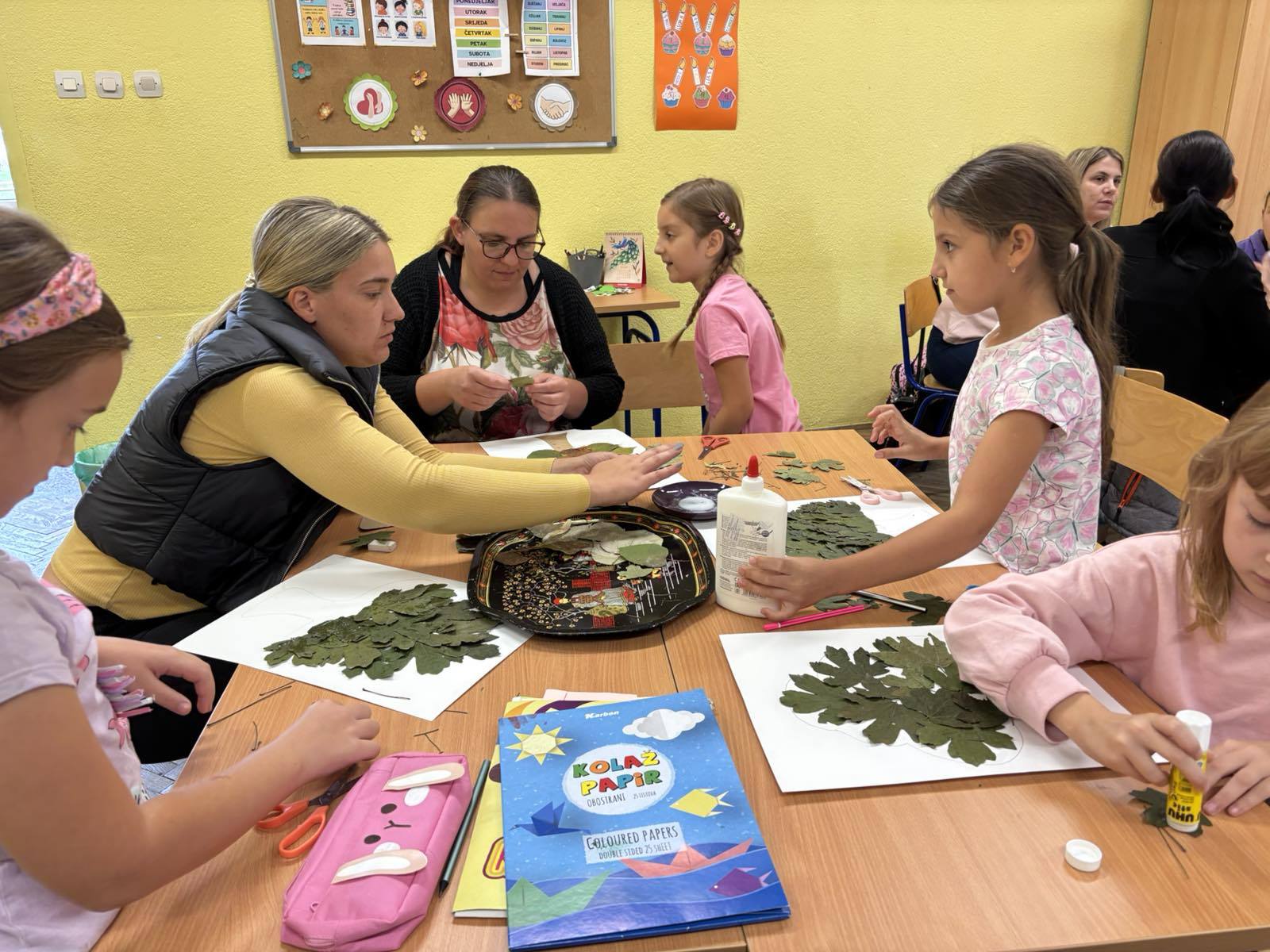 25. rujna 2025. u našoj matičnoj školi održana je kreativna radionica za učenike i roditelje 1. razreda. Zajedno su izrađivali stabla u čije su krošnje smjestili ptice, sove, gljive i ježeve – baš poput pravog ugođaja Dravske šume. Radionicu je osmislila i vodila pomoćnica u nastavi Jasna Horvat, educirana u području socijalno i emocionalno učenje u odgoju i obrazovanju na Filozofskom fakultetu u Osijeku.
