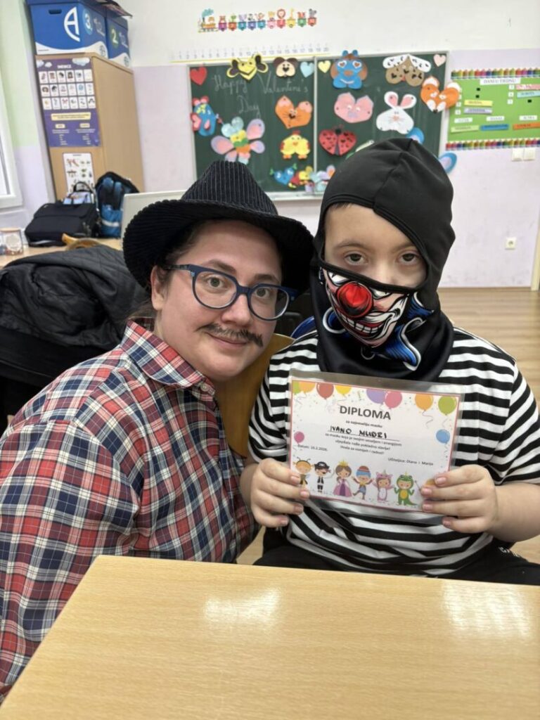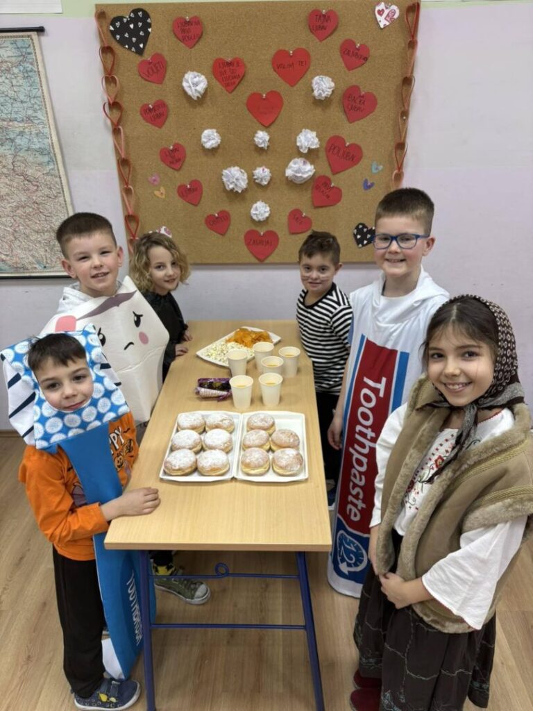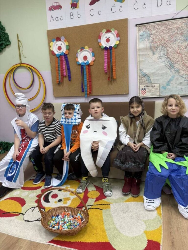Danas je u našoj školi zavladalo pravo pokladno veselje. Učenici su sudjelovali u raznim pokladnim igrama te su s veseljem predstavili svoje maštovite maske. Program je obogaćen pjesmom i plesom, a učenici su pokazali kreativnost i vedro raspoloženje. Održan je i izbor najkreativnije maske, pri čemu su nagrađeni trud, originalnost i maštovitost. Nakon zabavnog dijela svi su se počastili krafnama koje su dodatno zasladile ovaj veseli pokladni dan.