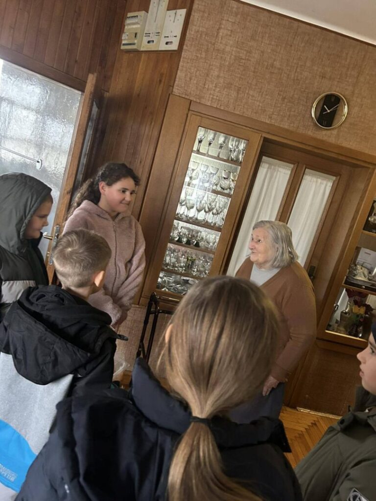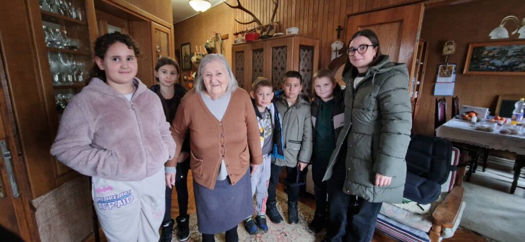 Voditeljica projekta i ravnateljica škole Ksenija, uz podršku školske knjižničarke Eme i vrijednih članova Volonterskog kluba – učenika 3.razreda posjetili su starije osobe sa područja naše općine.