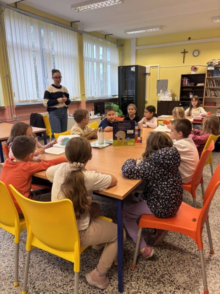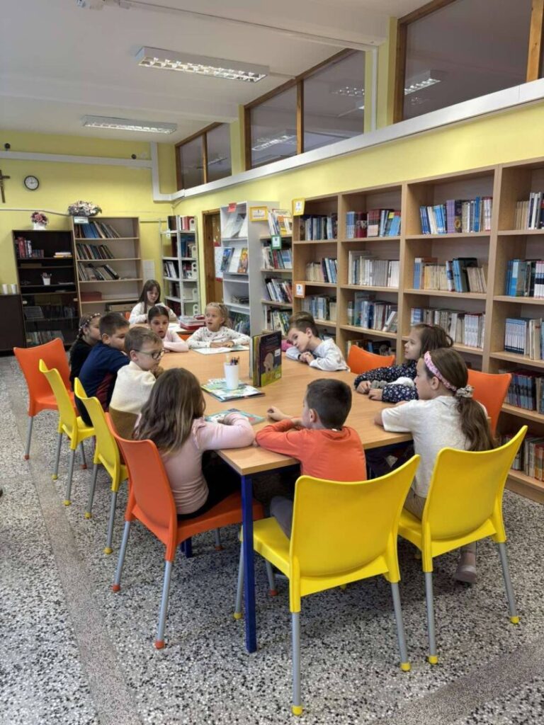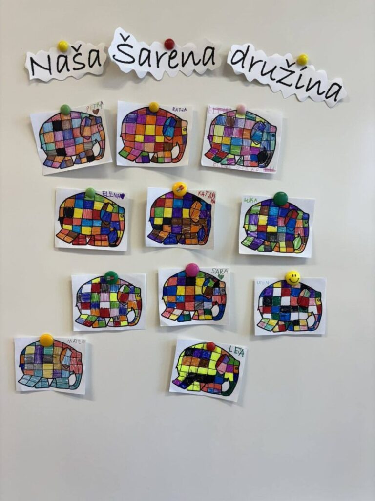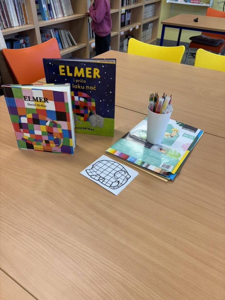 Učenici prvog razreda proveli su veselo jutro u školskoj knjižnici s knjižničarkom uz priču “Elmer” Davida McKeeja. Nakon čitanja razgovarali su o različitosti i prijateljstvu te su obojali vlastitog šarenog slona Elmera. Aktivnost je potaknula kreativnost i prihvaćanje različitosti.