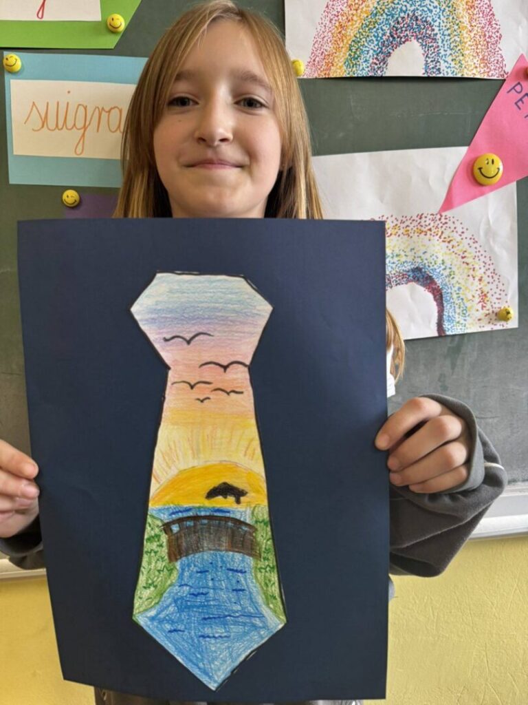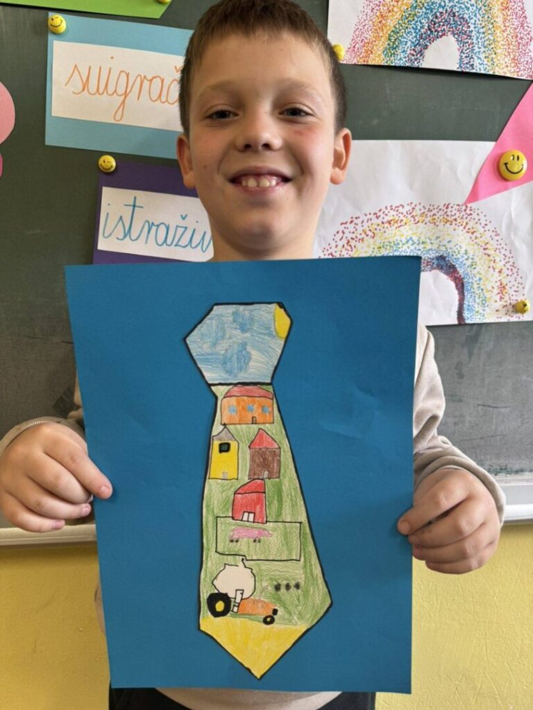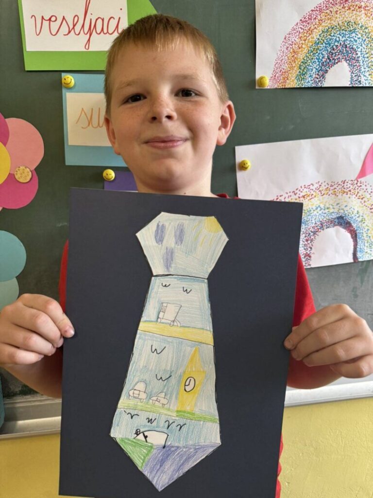 Ususret Svjetskom danu kravate 18.listopada, učenici 4. razreda su izradili kravate sa zadatkom “Moja kravata priča priču” te s ovim radovima učenici će sudjelovati u likovnom natječaju u suradnji s Akademijom likovnih umjetnosti. Zadatak je bio osmisliti kravatu koja priča priču o svom zavičaju i prenosi poruku, osjećaj, osobnost i ljubav.