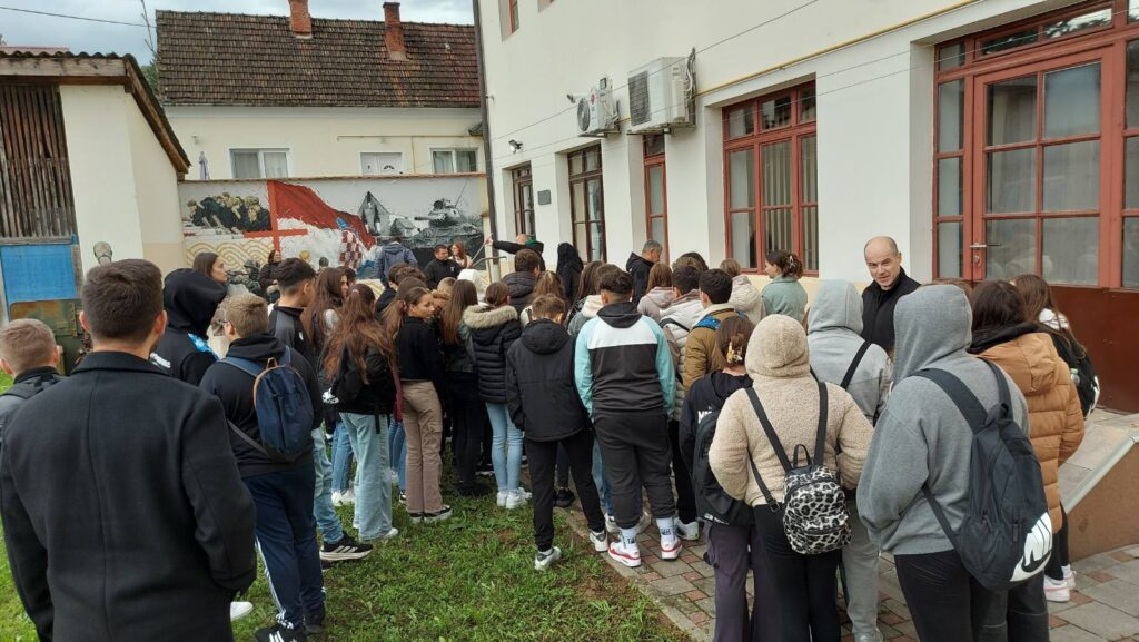 Terenska nastava učenika 7. razreda sa temom Domovinski rat na našem području, u organizaciji Udruge HVIDR-a Slatina i u pratnji razrednice Ane i učitelja povijesti Tomislava.