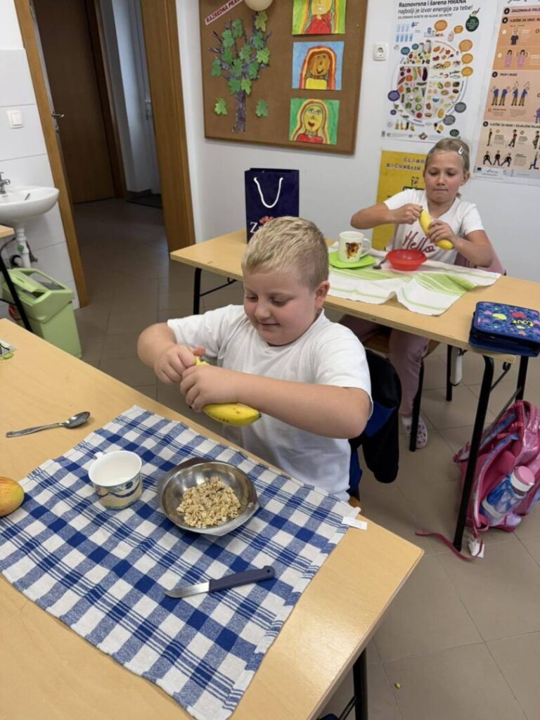 Učenici PŠ Noskovci započeli smo Tjedan zdravog doručka pripremom zobene kaše s medom, jabukama i bananama. Uz mirise i okuse zdravlja, naučili su koliko je važno dan započeti hranjivim doručkom punim energije.