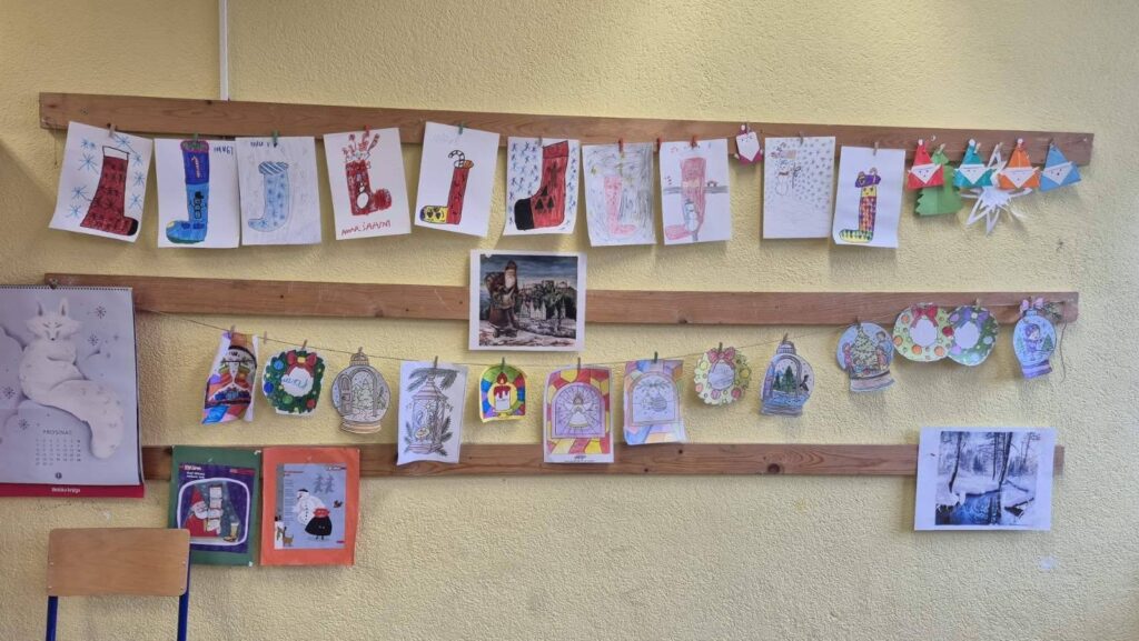 Vrijedne ručice učenika 2.razreda, uz pomoć naše Veronike, dvije Ivane i Martina uredili su dnevni boravak u duhu nadolazećih blagdana. A kreativna učiteljica Kristina oslikala je prozore. Još samo čekamo snijeg...