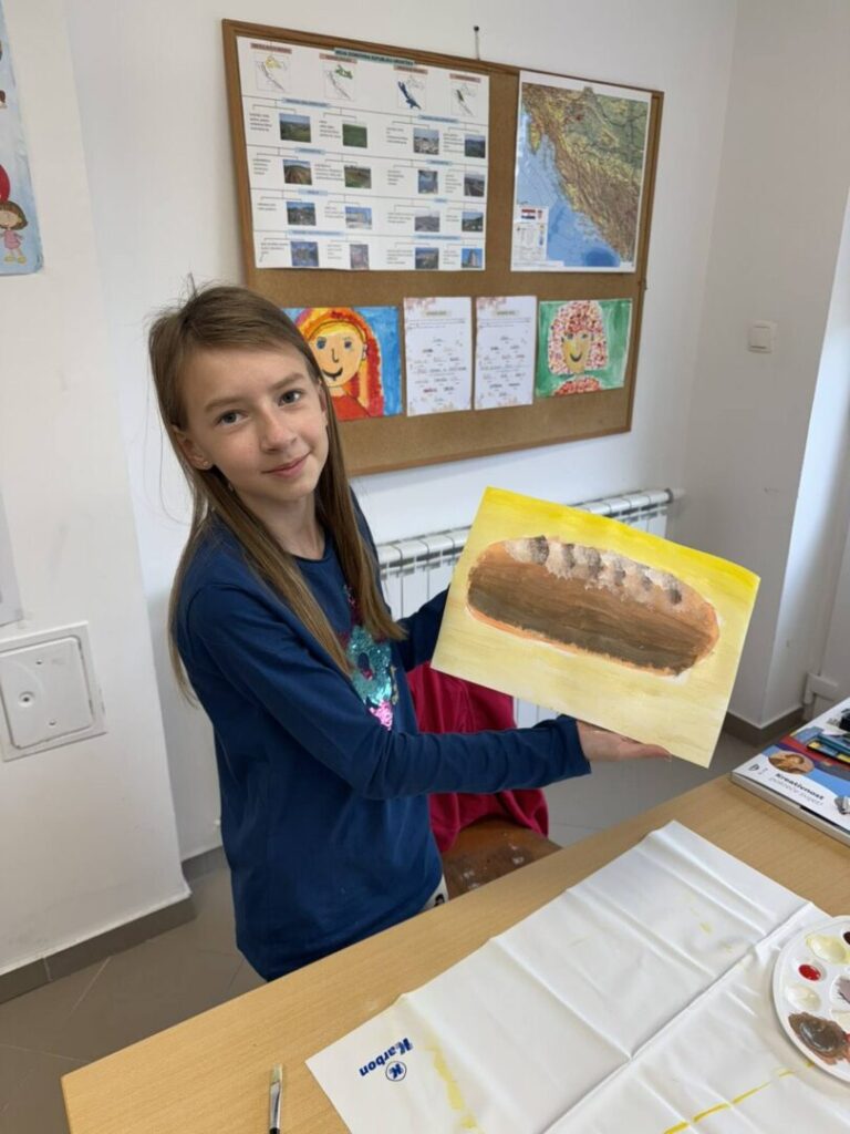 Zahvalili su Bogu na darovima prirode, čitali priče i pjesme o kruhu te učili kako nastaje kruh. Na kraju su temperama naslikali svoje pekarske proizvode u toplim jesenskim tonovima.