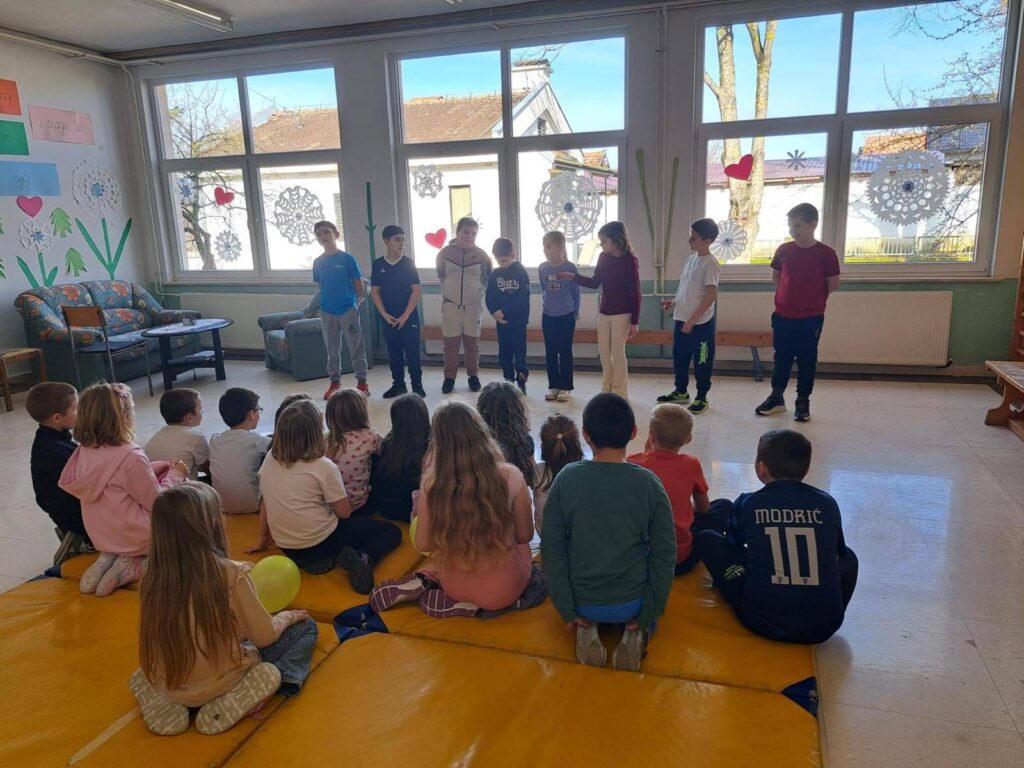 Učenici od 1. do 4. razreda u PŠ Sopje proslavili su Valentinovo uz pjesmu, pokret i puno veselja. Razigrano su otpjevali pjesme „Bubamarac“ i „Kad Anine noge gaze“, unoseći radost i smijeh u svaki kutak škole.